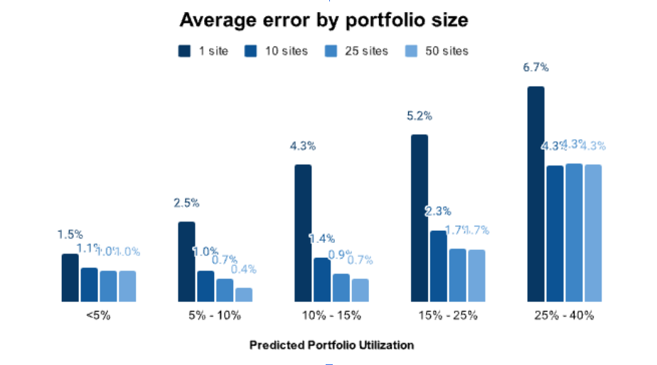 We measure this both weekly and on an annual, aggregated basis. On an annual basis, our MAE ranges from 2 to 7 percent depending on predicted utilization, and it does not increase for sites with predicted utilization above 10 percent.