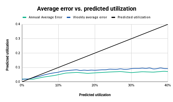 Every quarter, when we update our model, we run a comprehensive benchmark comparing our predictions against actual utilization to surface bias, measure error, and improve performance over time, and we share the results with our customers.